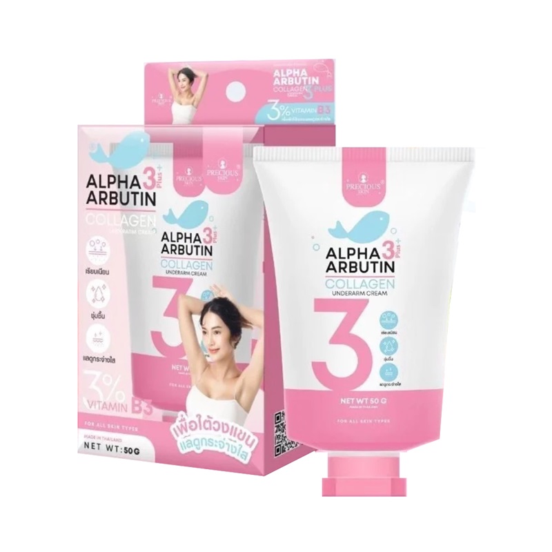 Achieve smoother, brighter, and more confident underarms with Alpha Arbutin 3+ Collagen Underarm Cream by Precious Skin Thailand – 50g (Authentic). This advanced underarm care formula is specially designed to help reduce dark underarm appearance, improve skin texture, and deeply hydrate delicate skin.